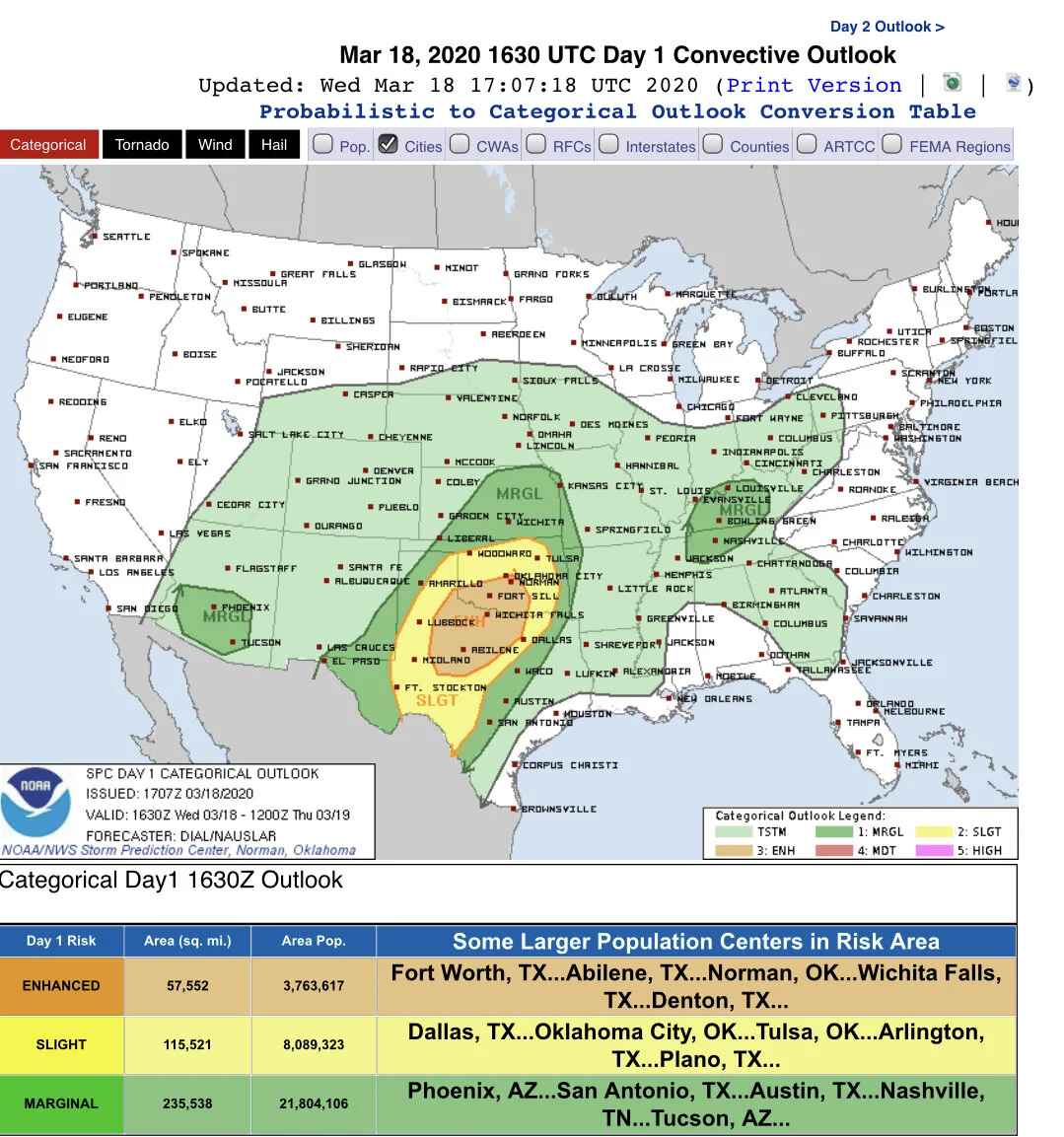 Storms are expected to fire up from Lubbock to Abilene and then track northeast this afternoon.