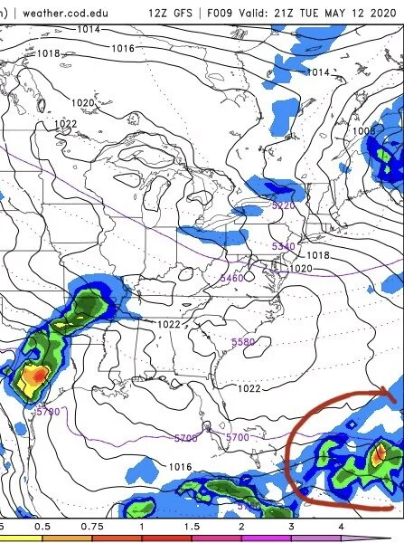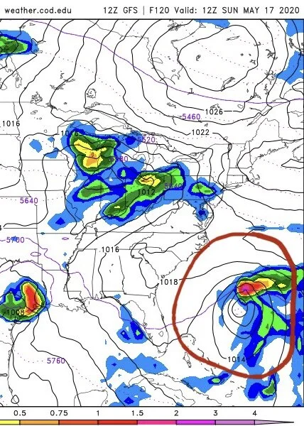 By Sunday morning, it looks a lot more like a tropical system per the GFS model, but it’s still a ways away from any land. It’s likely this system would become a “sub-tropical” depression or storm. Which basically is a big fancy way of saying, it has winds like a tropical storm (40mph - 70mph) but it lacks certain characteristics to be called a true “tropical” storm. It’s really just a scientific label thing. It doesn’t lessen or worsen impacts. Generally, “sub-tropical” systems won’t develop much stronger than a “sub-tropical storm.” If it does, then it’s just labeled a hurricane.