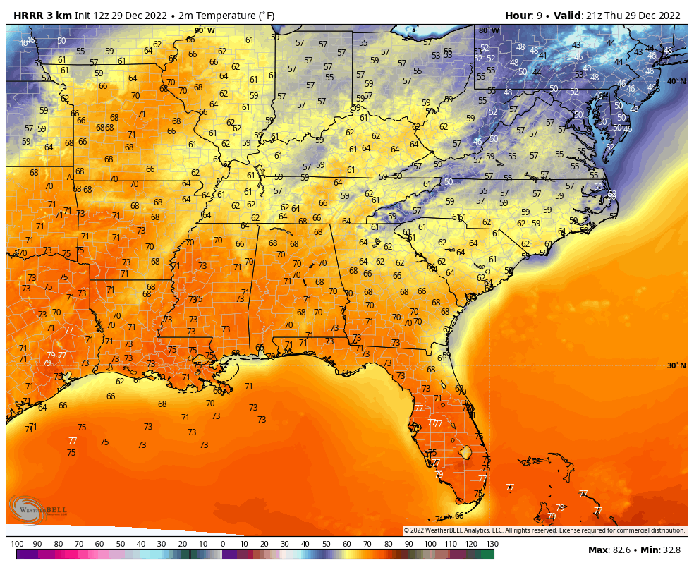 Despite the rain, much of the Southeast and even up into Missouri will be pretty warm over the next few days. That’s one reason a few of these storms today could become strong to severe across Louisiana. This warmth is welcomed with open arms after last weekend’s major Arctic front.