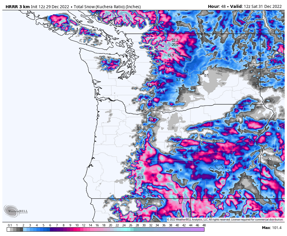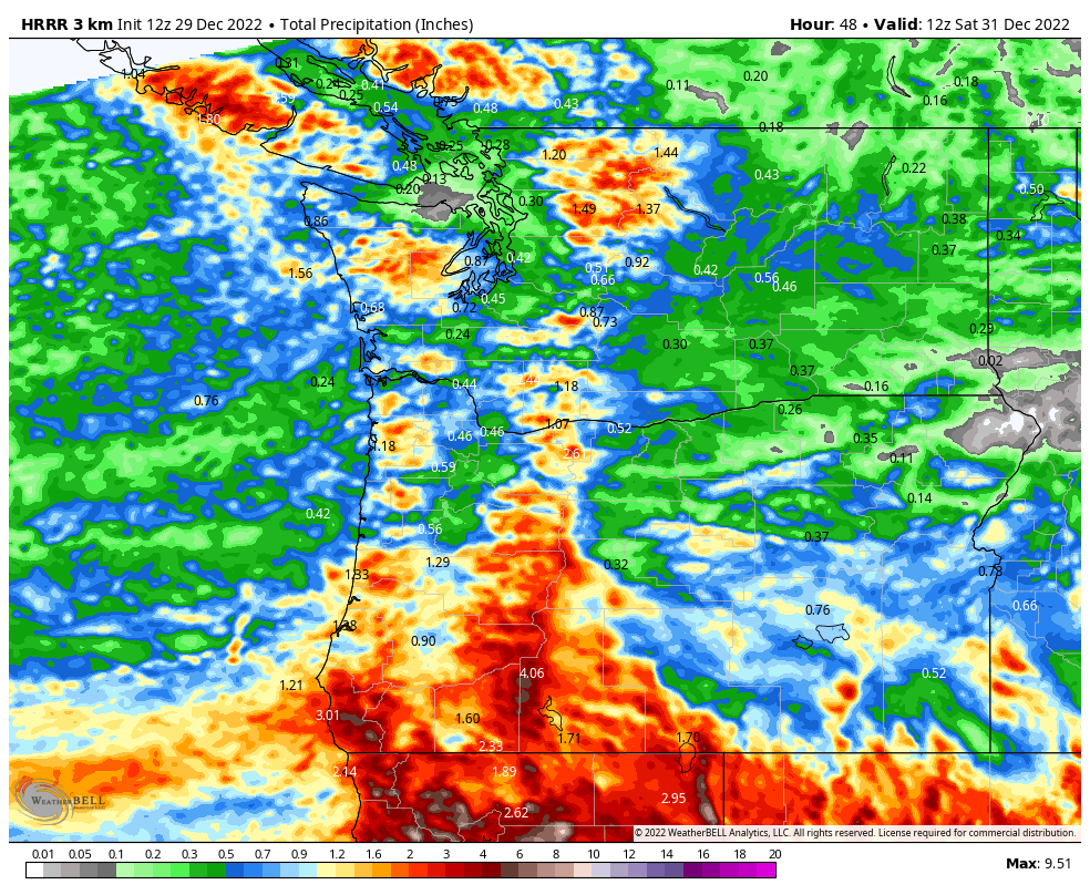 It has rained a lot recently along the West Coast of Washington, Oregon and California, and we’re going to see more of that later today and into the night. This will also translate into several inches to feet more snow in the mountains. All good news for local ski resorts in the area, but rather gloomy conditions for the folks living at lower elevations.