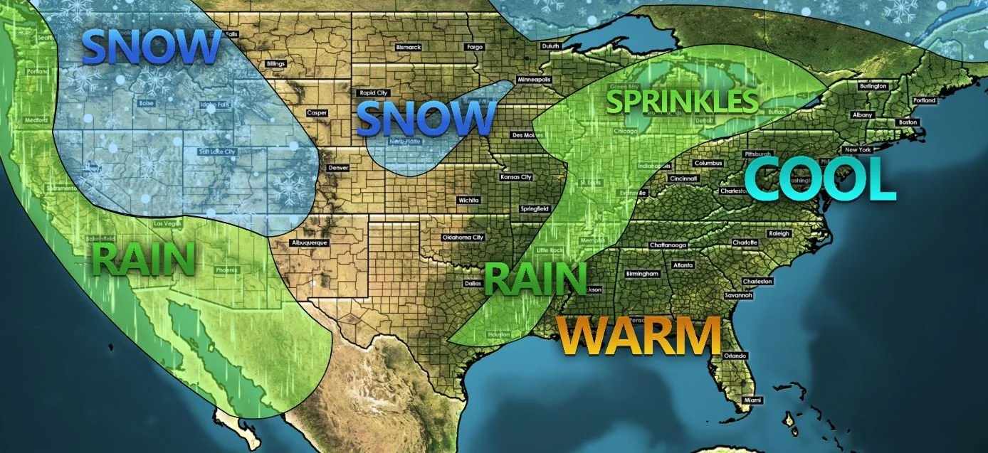 Mild with rain in the South; Coastal rain/mountain snow for much of the West