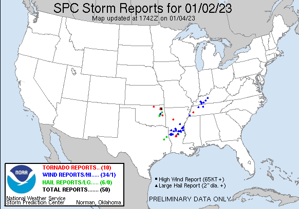 There were 50 reports of severe weather on Monday. 10 tornado reports, but Louisiana only had 3 reports and all of them were from Jackson Parish.