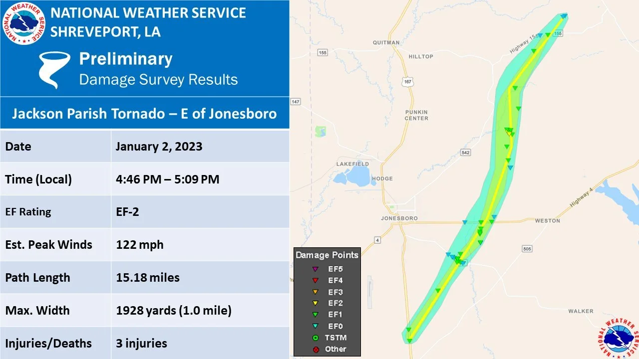 NWS confirms EF-2 tornado in Jackson Parish from Monday storms