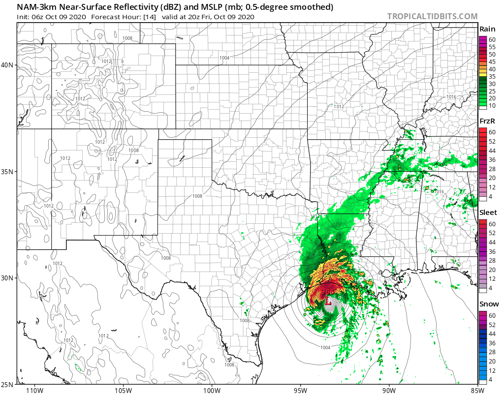 Unfortunately, the latest track from the National Hurricane Center is a little further west than yesterday. I say “unfortunately” because that means this storm is more likely now to travel over some of the exact same areas that were devastated by Hurricane Laura earlier this season. Some people in southwestern Louisiana just got their power back on last week, and are now looking at another storm heading their way.